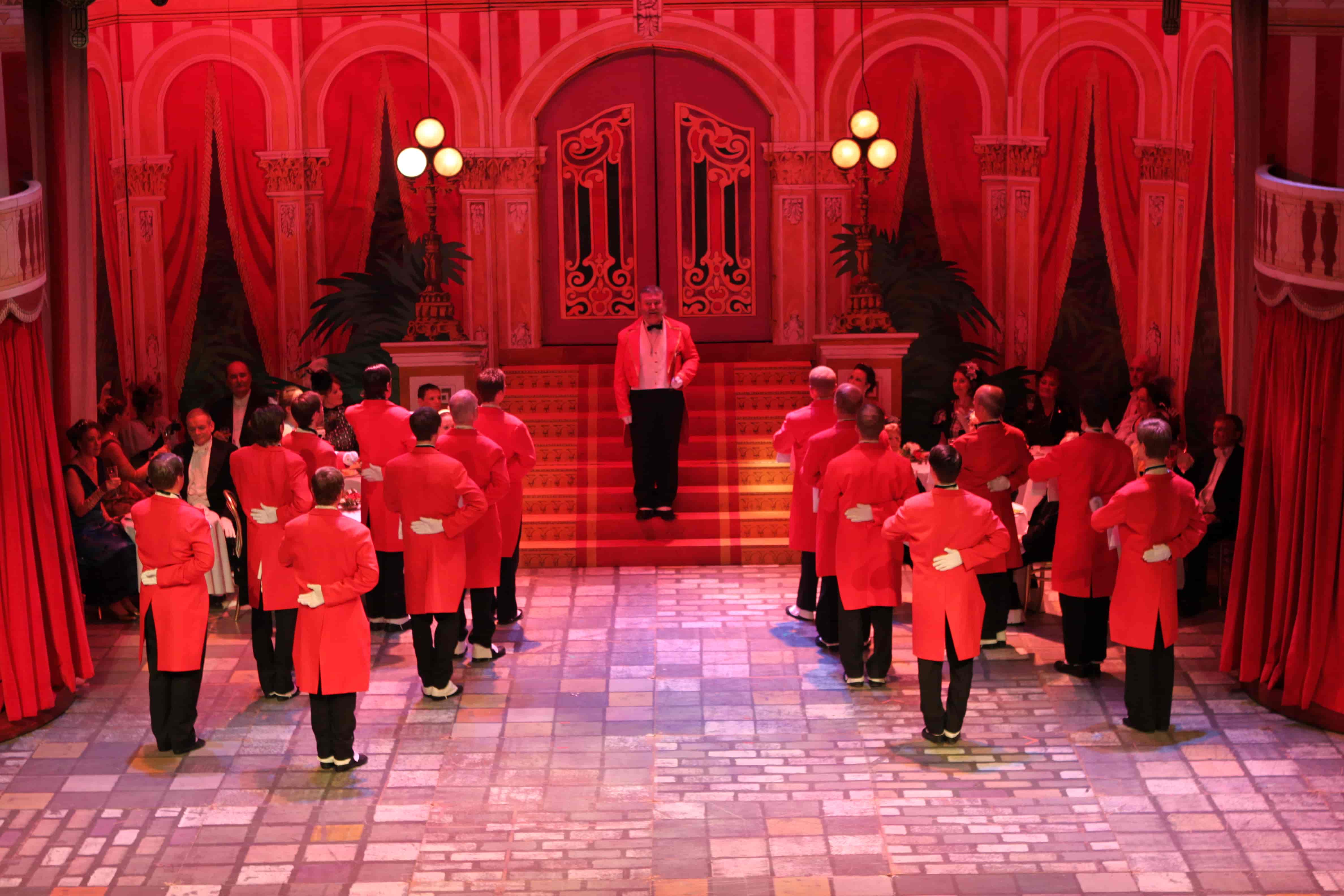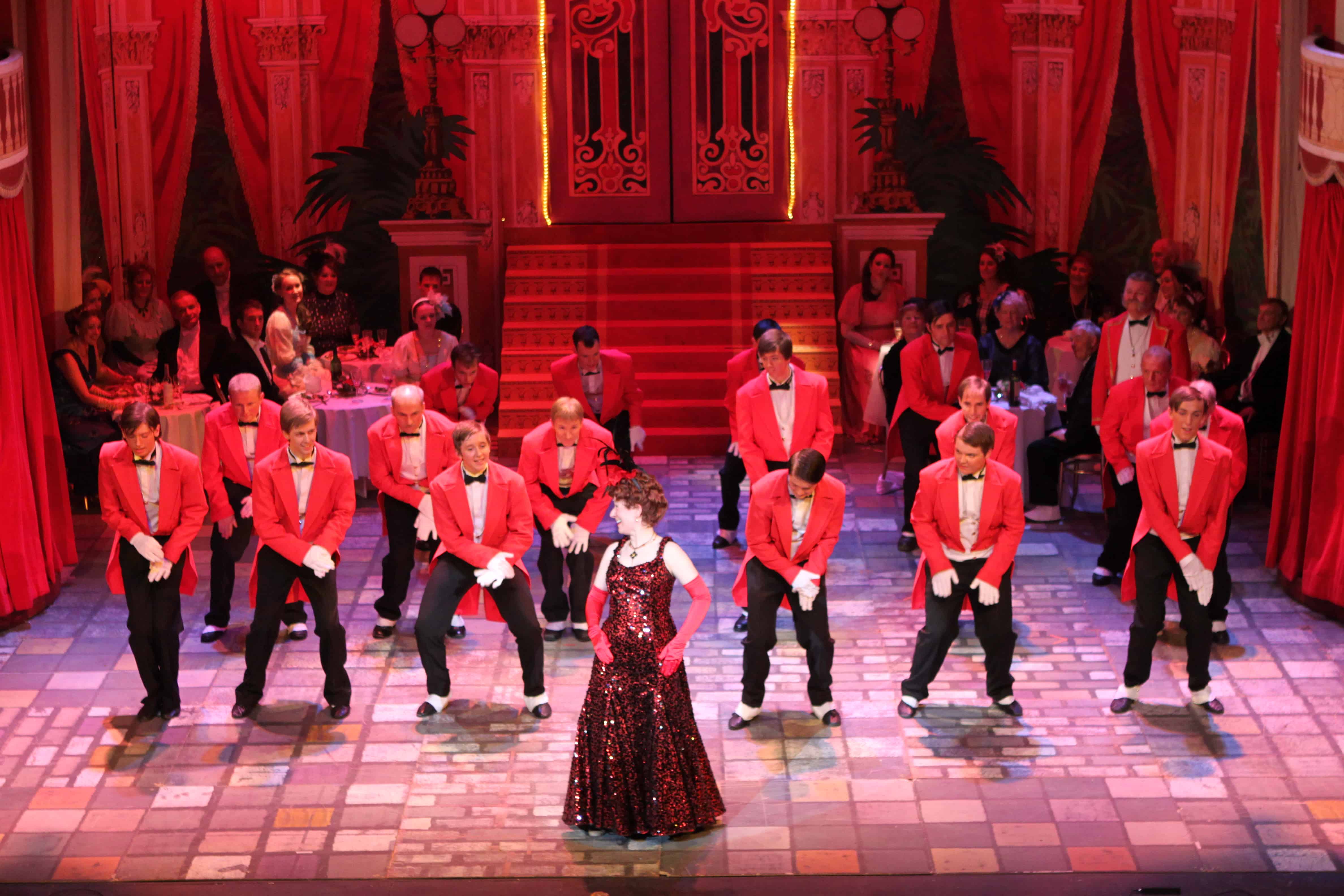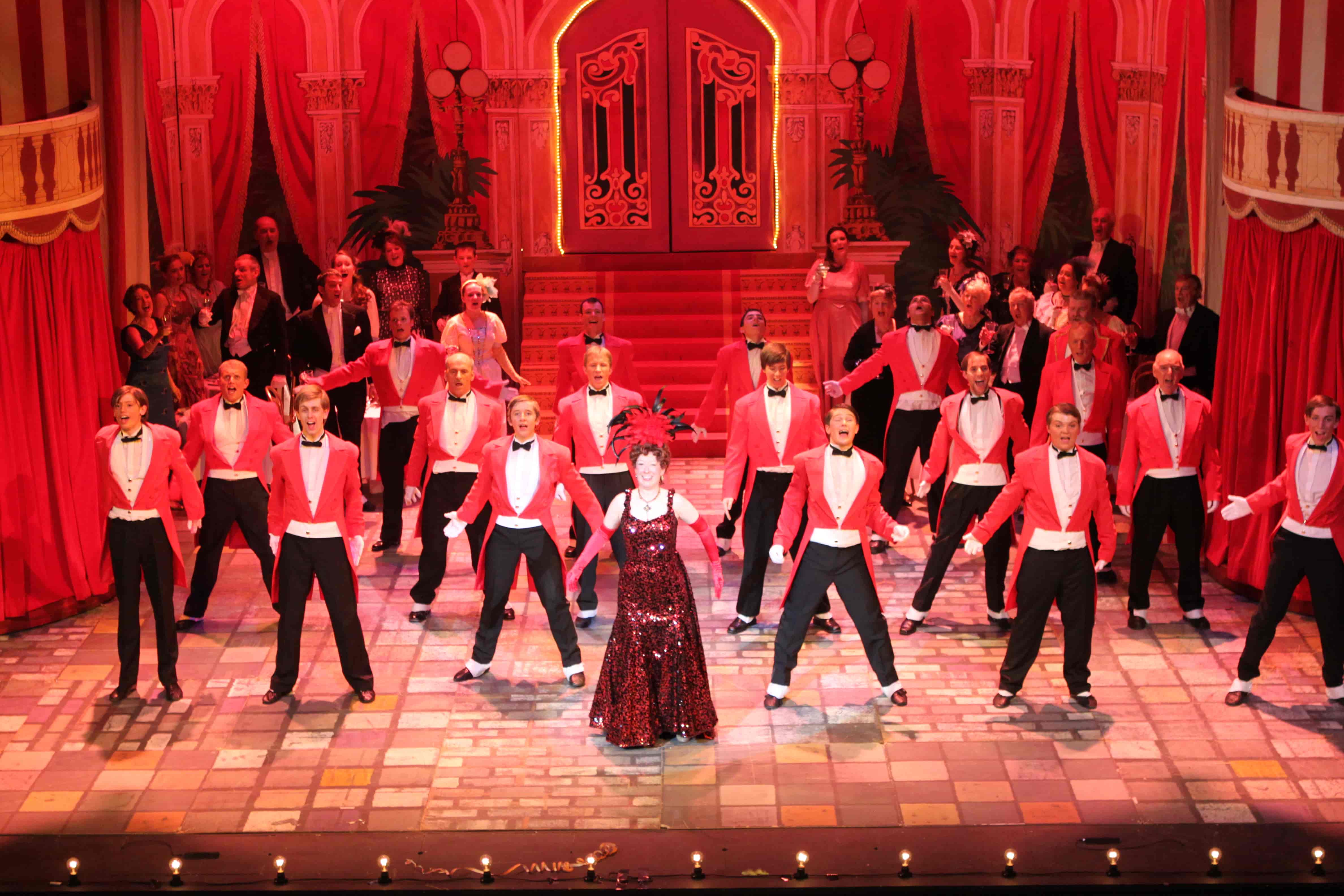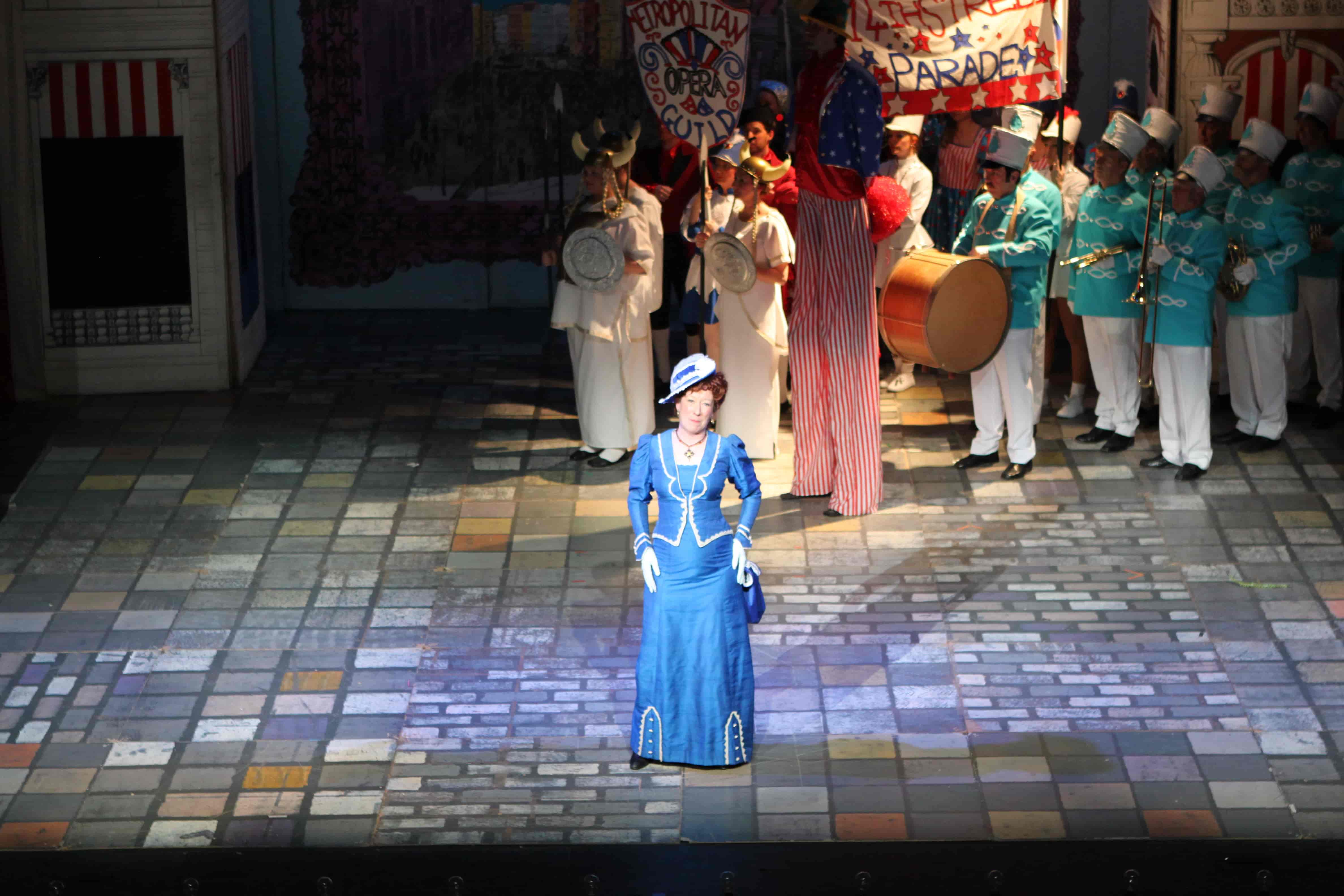 Our wardrobe for Hello Dolly includes stunning gowns for Dolly Levi; a beautiful set of assorted pastel dresses and blazers for Put On Your Sunday Clothes; a red, white and blue parade set for Before the Parade Passes By; and tailored red tails for the waiters in the famous Harmonia Gardens Waiters' Gallop scene.