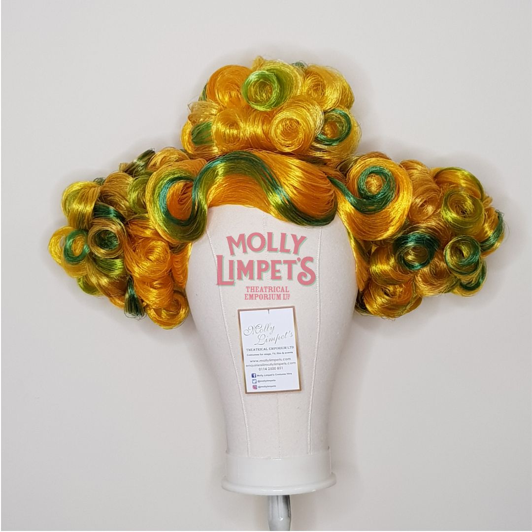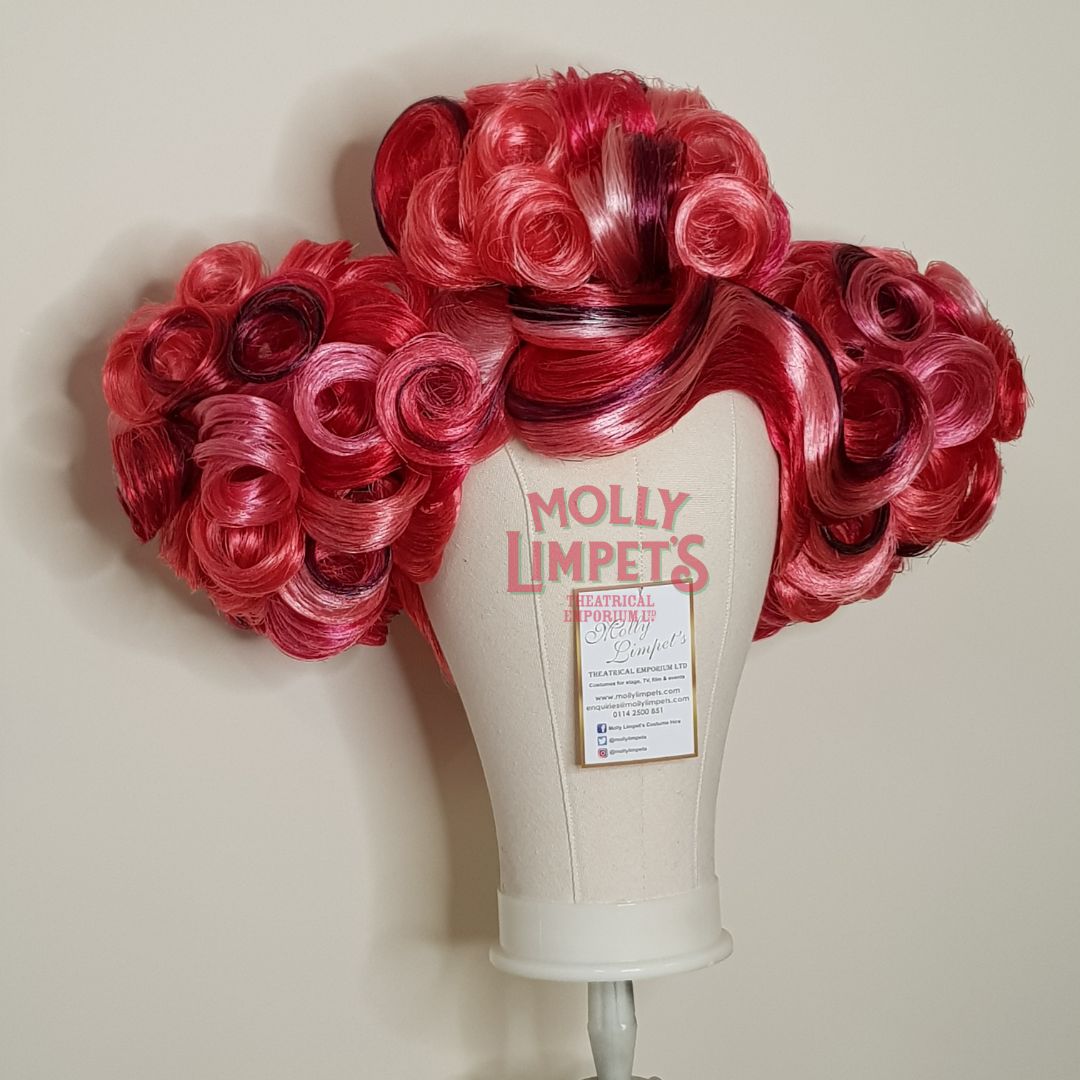 Molly Limpet's has a unique collection of bespoke hard fibre Pantomime Dame wigs for hire. We commission the very talented and wonderful David Birt of Wig Art Theatrical Ltd to produce new wigs for us each season. We have more than are shown here, but these images give a good overview of the colours and styles available.